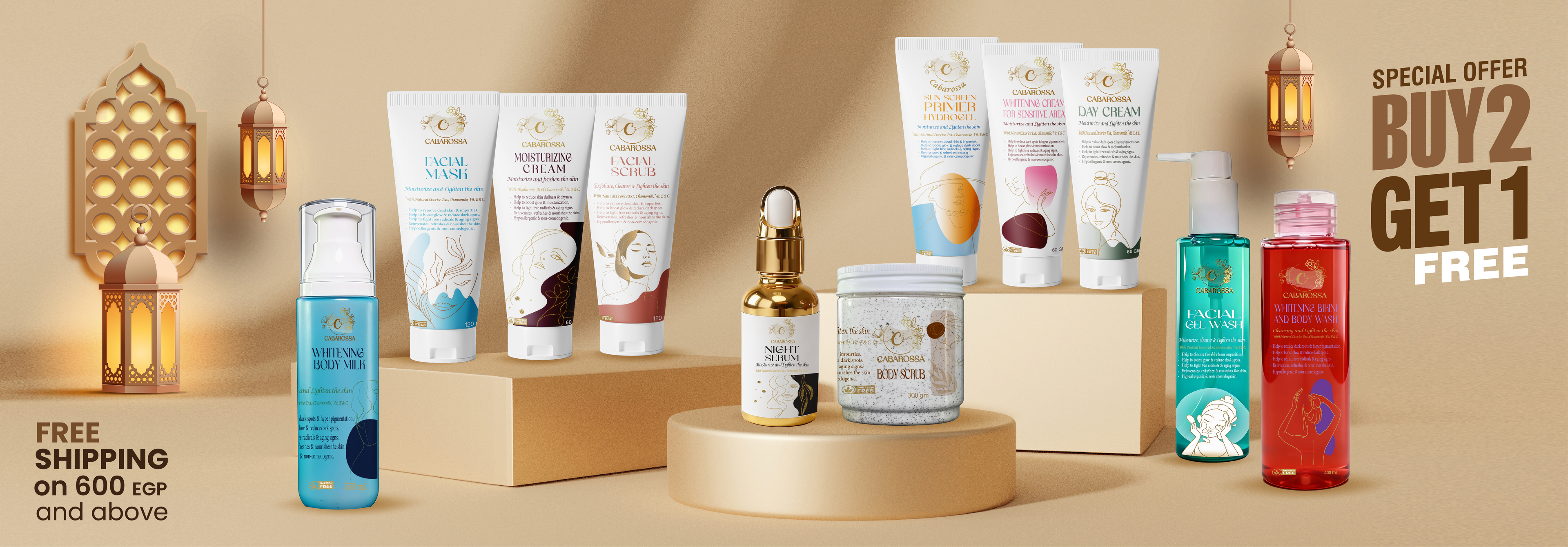 بادي ميلك 200 ملي + صن سكرين 60 جم Cabarossa Body Milk & Sun Screen Primer Cream